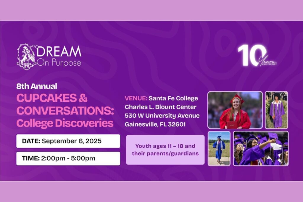 Local LivingDream on Purpose to host ‘Cupcakes & Conversations: College Discoveries’ on Saturday Staff Reports Sep 4, 20250 commentsEvent to be held at Santa Fe College Blount Center.