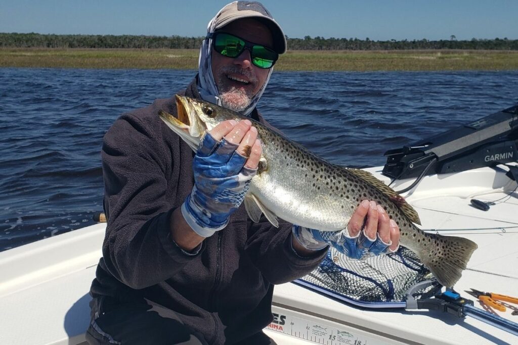 Tuesday, George DeLoach and Greg Brown enjoyed an excellent trout and redfish day in the Steinhatchee shallows, releasing 31 trout up to 26 inches long and 19 slot-size redfish. They were surprised, too, to hook several large Spanish mackerel in water about three feet deep.