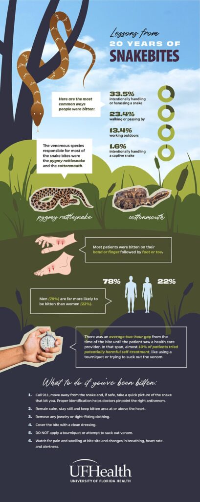 Like eating well and exercising to feel better, the avoidance approach is fully backed by science. A new study from University of Florida Health researchers analyzed 20 years of snakebites cases seen at UF Health Shands Hospital in Gainesville.