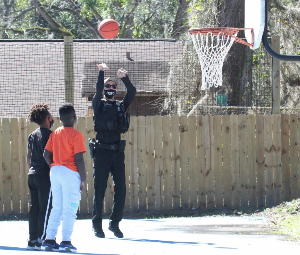 Sheppard and other members of the HSPD spent a few hours playing cornhole and basketball, chatting and enjoying treats provided by local businesses.