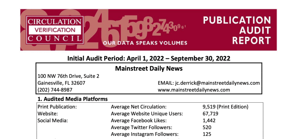 Main Street Daily News Gainesville, LLC is owned by Main Street Daily News, LLC. Legal notices may be viewed in our weekly print newspaper and on the statewide repository site, www.floridapublicnotices.com.