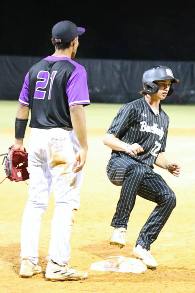 Photo by C.J. Gish Buchholz’s Ryan Tomlinson gets to third base in the sixth inning against Winter Springs on Tuesday.