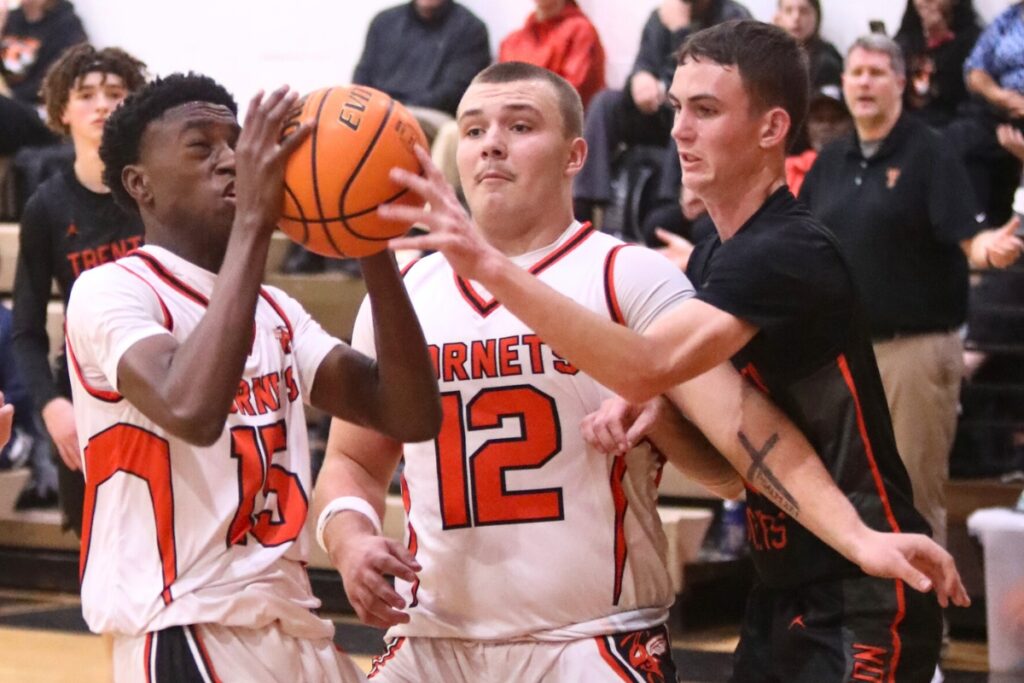 In fact, Trenton (11-9) didn’t score its first basket until freshman reserve Tyler Bullis (team-leading eight points) drained a 3-pointer from the right wing with 33 seconds to play in the opening quarter.
