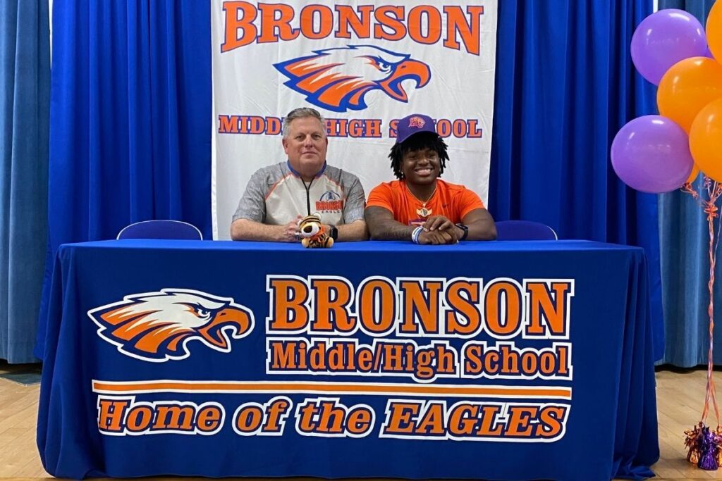 On Monday night in the Bronson cafeteria, Eagles’ football coach Russell Holley addressed the audience that was there to see senior Ke’Tron Thomas sign with Edward […]