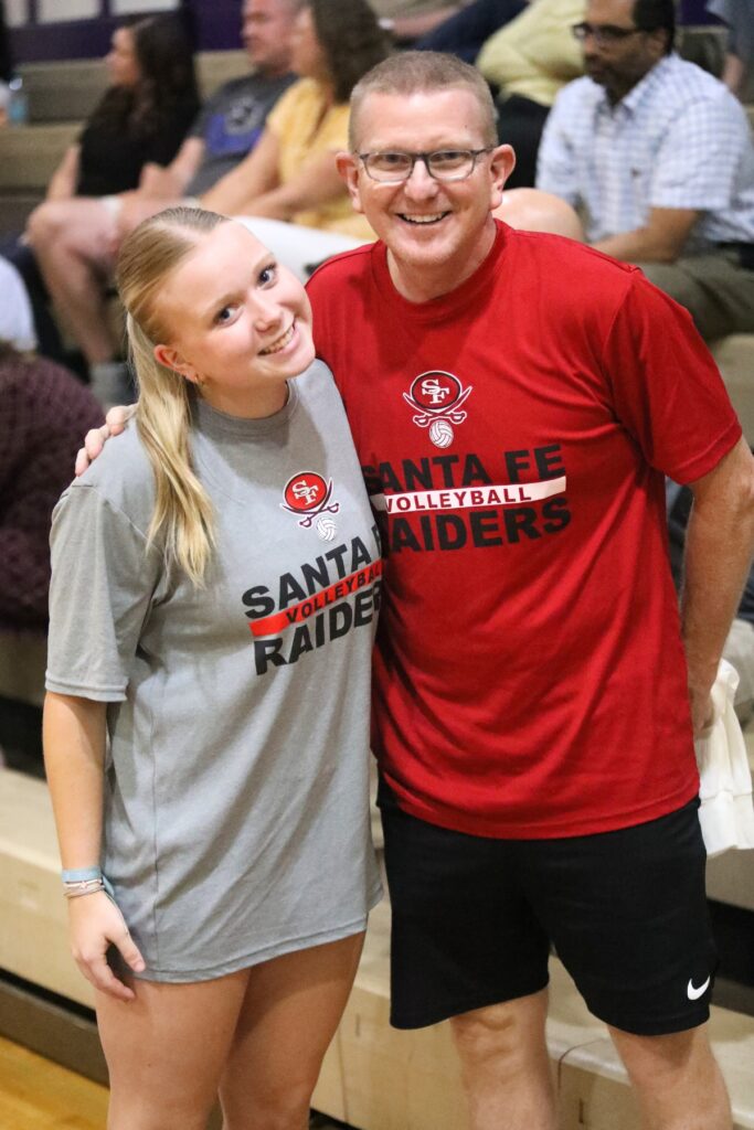 “Well, for me, this is the second daughter that I’ve coached,” said Santa Fe coach Eric Marshall, whose daughter Ramsey was a libero/defensive specialist on the 2018 6A and 2019 4A state runner-up teams. “I love it. I guess for some parents it would be tough but for me, I’m able to distinguish the two and separate them and also I’m able to push her very hard because she’s used to it, so I enjoy it a lot. It’s kind of why I do what I do, to be honest.”