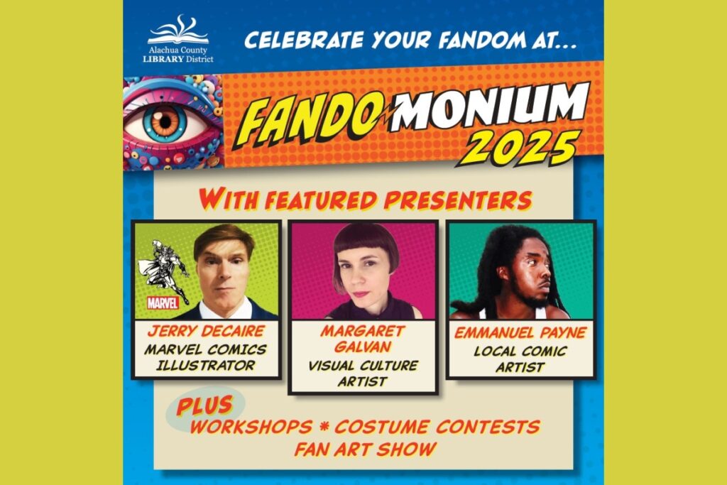 Local Living‘Fandomonium’ slated at Alachua County Headquarters Library on Saturday Staff Reports Sep 23, 20250 commentsEvent to celebrate books, comics, games and shows.