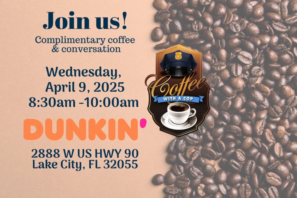 Local LivingLake City Police to host ‘Coffee with a Cop’ Staff Reports Apr 7, 20250 commentsEvent slated at Dunkin’ on Wednesday.